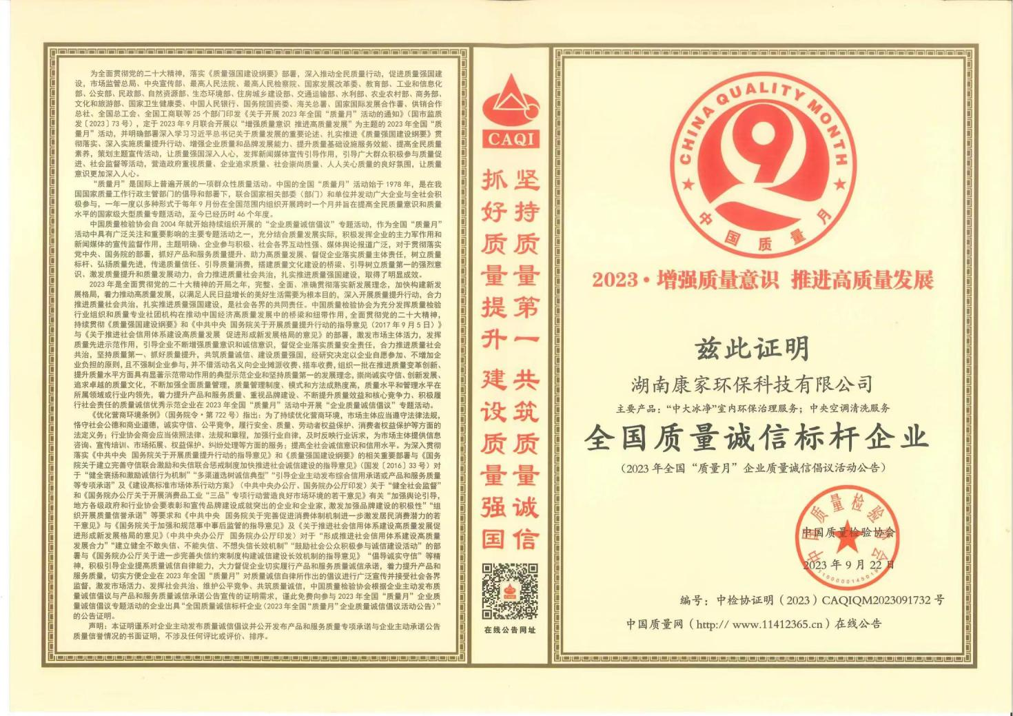 喜报丨康家环保获评为湖南省和长沙...2023年5月9日,湖南省市场监督管理局公示了2022年度守合同重信用企业名单,经过企业申报、各市市场监管局推荐,相关部门严格...
